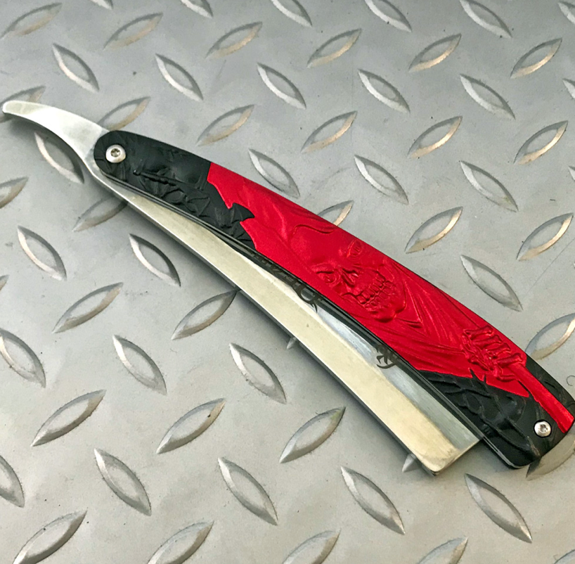 Red/Black Dark Side Blades Grim Reaper Razor Blade with Mirror Finished Blade and Grim Reaper Scullpted Handle.