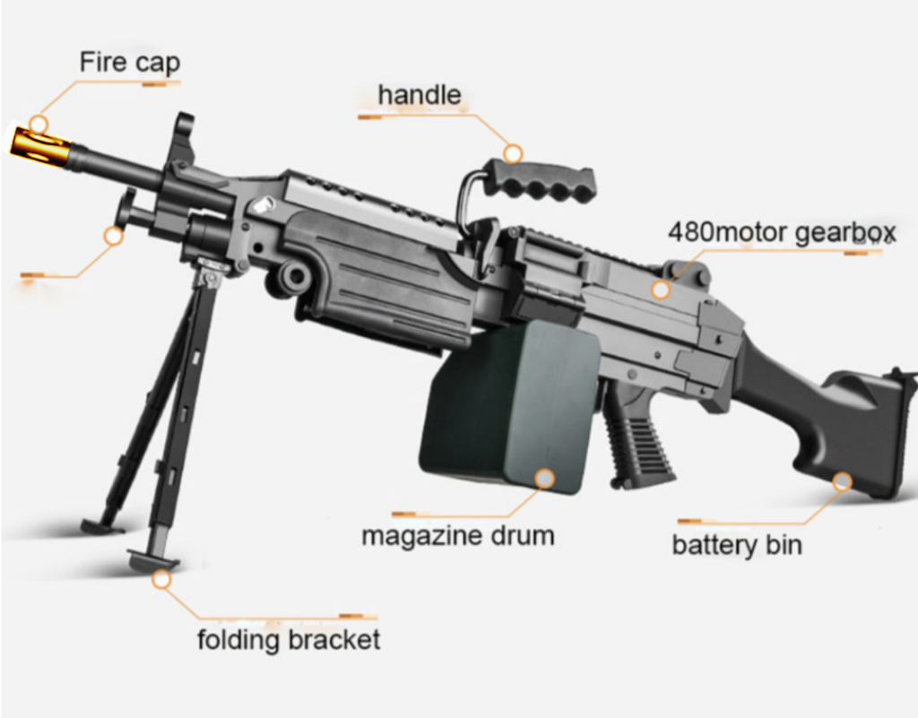 The SAW M249 V4 is a blaster for the trigger happy. It features a massive magazine that will hold 800 - 1000 gel balls.